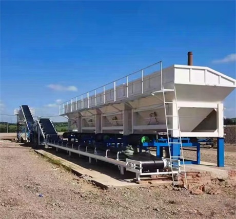 600噸水穩(wěn)拌和站工藝流程: 600噸水穩(wěn)拌和站工藝按工程所需骨料分別用裝載機裝入各個料斗,開啟料斗閘門,骨料落到皮帶秤皮帶上,各皮帶秤按工程設(shè)定流量值自動定量連續(xù)稱量和輸送所需骨料,然后由水平皮帶機把骨料送入攪拌裝置,所需粉料由粉料倉經(jīng)螺旋輸送機送至螺旋電子稱,螺旋電子稱按照重量設(shè)定值自動連續(xù)的稱量出所需用的粉料,送至攪拌裝置內(nèi);攪拌用水由水泵經(jīng)過調(diào)節(jié)閥門及管路按工程所需水量送至加水器噴頭,均勻的噴灑在攪拌裝置內(nèi),進(jìn)入攪拌機的物料在攪拌機內(nèi)相互反轉(zhuǎn)的兩根攪拌軸上螺旋漿片的攪拌下,受到漿片周向、徑向、軸向力的作用,使物料產(chǎn)生擠壓摩擦、剪切、對流,從而進(jìn)行劇烈的強制攪合,并向出料口推移,當(dāng)物料到達(dá)機內(nèi)出料口時,各種物料已相互得到均勻的拌合,并具有了壓實需要的含水量,此后均勻的物料由出料口落到斜皮帶機上,由該皮帶機輸送到儲料倉內(nèi),等待運料車到來后,由氣缸控制的斗門開啟,裝車后斗門關(guān)閉,成品料運往施工現(xiàn)場。 600噸水穩(wěn)拌和站廣泛用于公路和城市道路的基層、底基層施工構(gòu)造特點: 1、攪拌有效長度大(攪拌機內(nèi)凈長3.3米,攪拌葉片60片),雙電機驅(qū)動,動力強勁效率高,大容量,低充盈率,攪拌葉片加長加密拌和物料均勻。 2、采用電腦變頻電控技術(shù),變頻器,微機自動化控制,穩(wěn)定的計量系統(tǒng),工作使用協(xié)調(diào);具有手動、自動兩種控制功能且可互相切換。皮帶秤配料計量范圍寬,計量平穩(wěn)。 3、氣動控制系統(tǒng)采用大直徑重型氣缸可長期運行。 4、采用大功率雙臥軸無襯板攪拌機生產(chǎn)能力大,效率高,維修方便。 5、整體結(jié)構(gòu)集中布置,占地面積小。可拆遷式結(jié)構(gòu),能迅速地分塊、轉(zhuǎn)場、組裝運輸、安裝等特點。